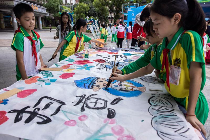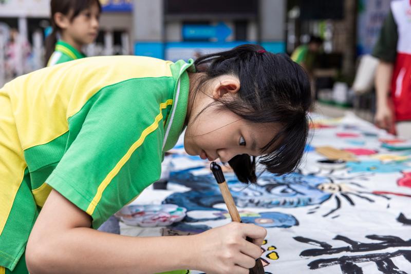 孩子们在长卷上书画。信息时报记者 陆明杰 摄