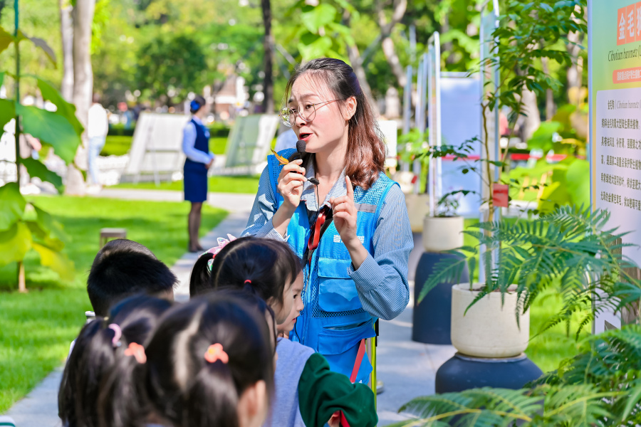 广州正在高标准推进华南国家植物园体系建设工程,打造“1+3+N”的华南国家植物园城园融合体系。记者看到,在建园102周年之际,人民公园特设“绿美广州”植物科普研学大课堂,重磅推出华南国家植物园珍稀濒危植物展。