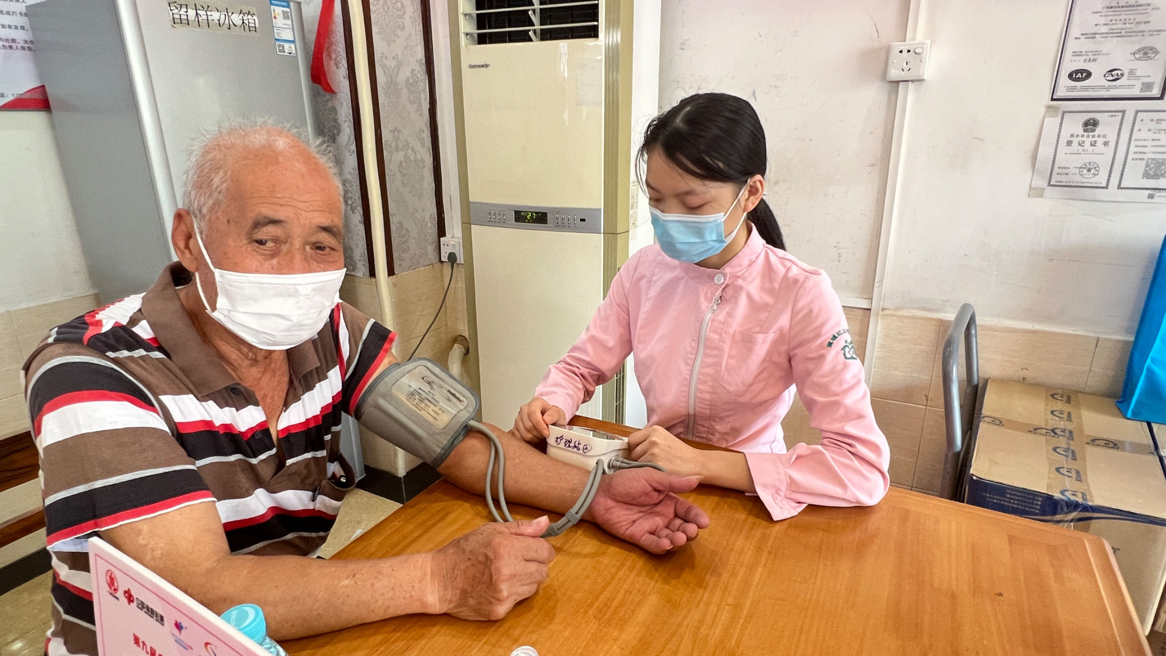 “有一个患有阿兹海默症的阿叔,妻子是他的护理员。阿姨自己也是癌症患者,但阿叔每天都离不开人,阿姨的照护负担很重。有一次碰到阿姨来中心拿药,我跟她聊天,才知道她自己不舒服了只能抽空出来拿药,急急忙忙又回去。我看到她很疲惫,后面再上门巡诊,都会嘱咐阿姨注意休息,多跟她说说话。”王姑娘获得了越来越多信任,“还有一个阿公,有一段时间每天晚上起来打蟑螂,也不开灯,有很高的跌倒风险。家人担心他受伤,劝阻了很多次也没用。阿公的家人就给我发微信,跟我说了这件事,让我跟他好好说说,还说阿公听我说的。我上门的时候跟阿公解释了以后,他跟我说再也不半夜打蟑螂了。当时我还挺开心的!”