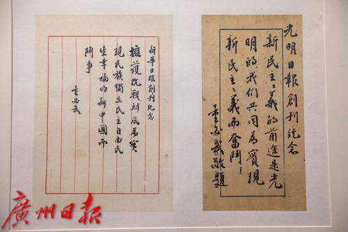 董必武为《新华日报》创刊纪念(左)和《光明日报》创刊纪念写下的手迹。
