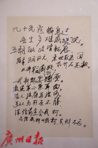 10月12日上午,在广州起义纪念馆一楼展厅,一幅幅书法诗作浸润凝聚的革命往事。当天,由中共广州市委宣传部、市文化广电旅游局联合举办,广东革命历史博物馆承办的“作始也简,将毕也钜——董必武手迹展”于在广州起义纪念馆正式开幕。