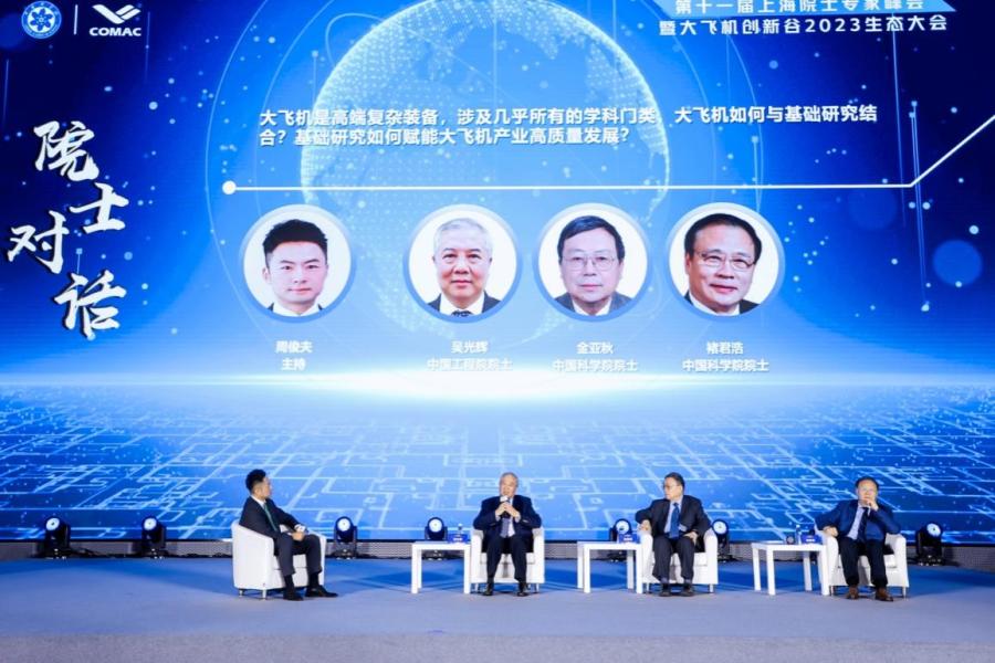 在随后的院士对话中,中国科学院院士褚君浩、中国科学院院士金亚秋、中国工程院院士吴光辉等参与了主题为“基础研究赋能大飞机产业高质量发展”的对话论坛,强调基础研究对于大飞机产业发展的重要作用以及新技术的出现对于航空产业的深远影响。