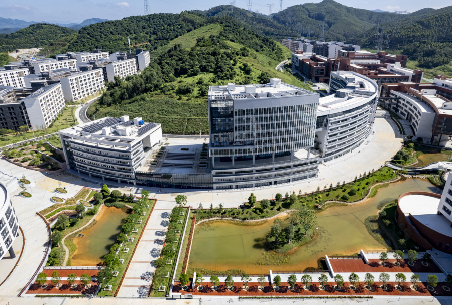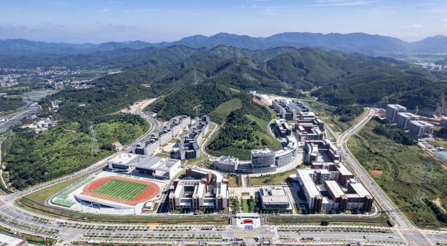 校区一派“岭南山水校园”风貌,建筑群呈U型布局