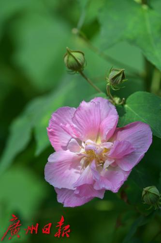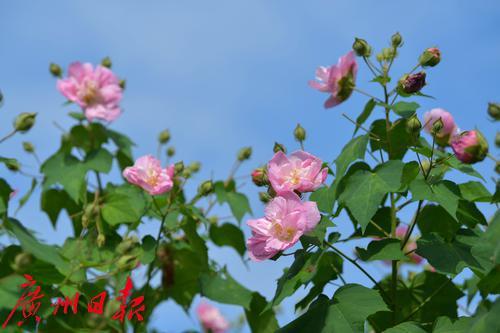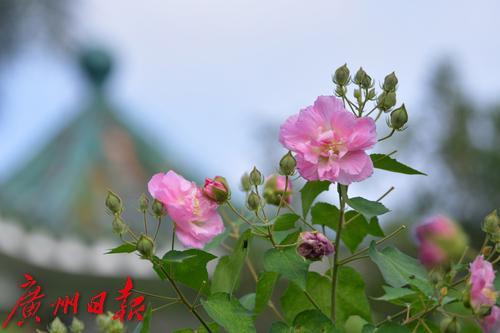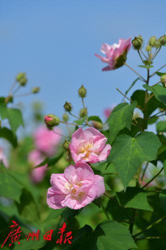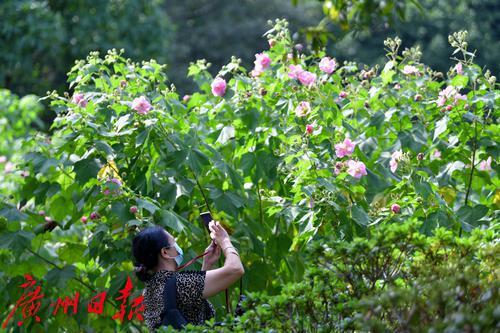金秋羊城,流花湖公园芙蓉洲内的大片木芙蓉花已悄然进入了盛花期。木芙蓉又名芙蓉花,柱高3—5米,花朵寿命仅一日,但植株上花蕾众多,此开彼落,且花朵较大,花色娇艳如荷。木芙蓉初开时花冠洁白,并逐渐转变为粉红色,午后至傍晚凋谢时变为深红色,因花朵一日三变其色,故又名“三变花”。