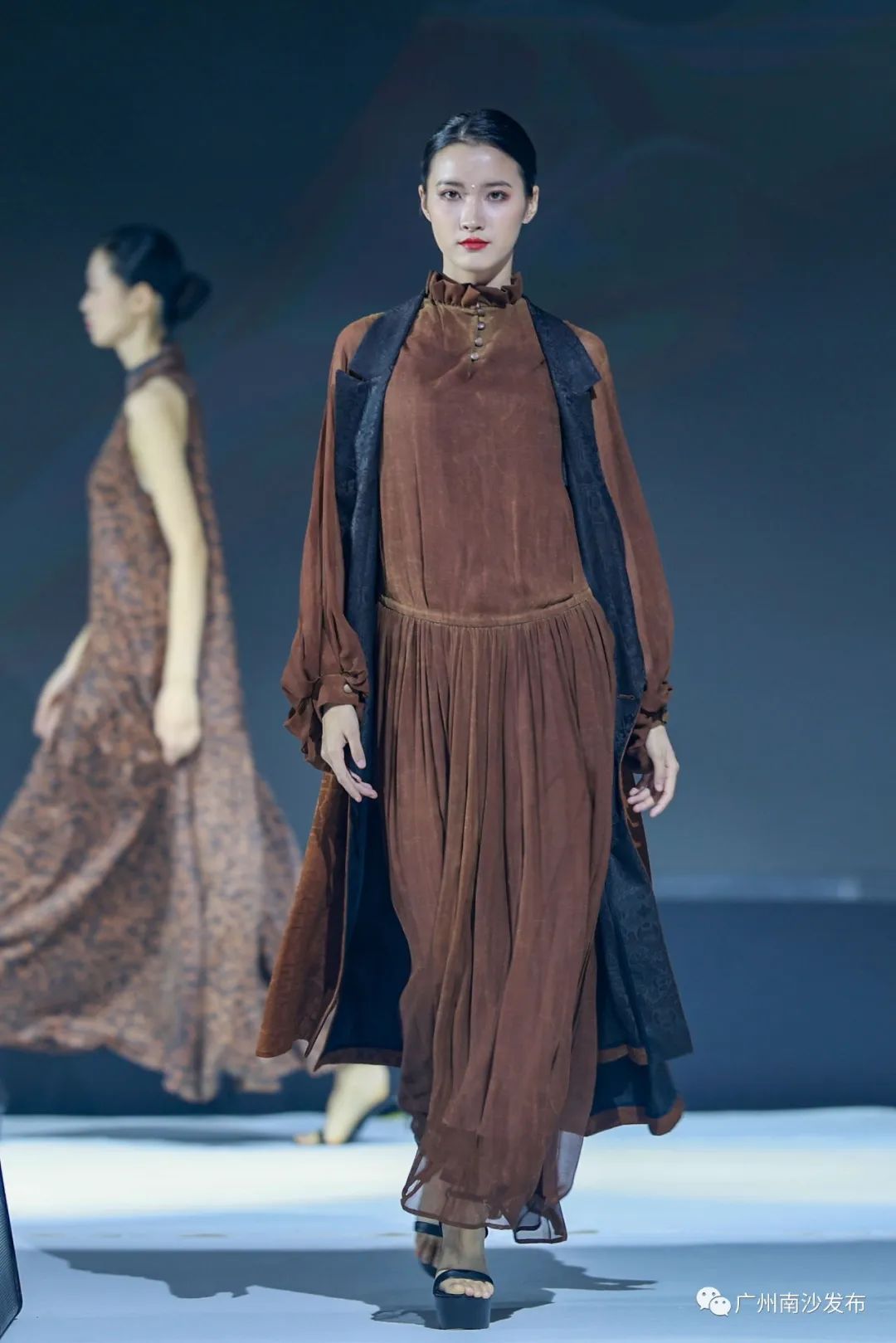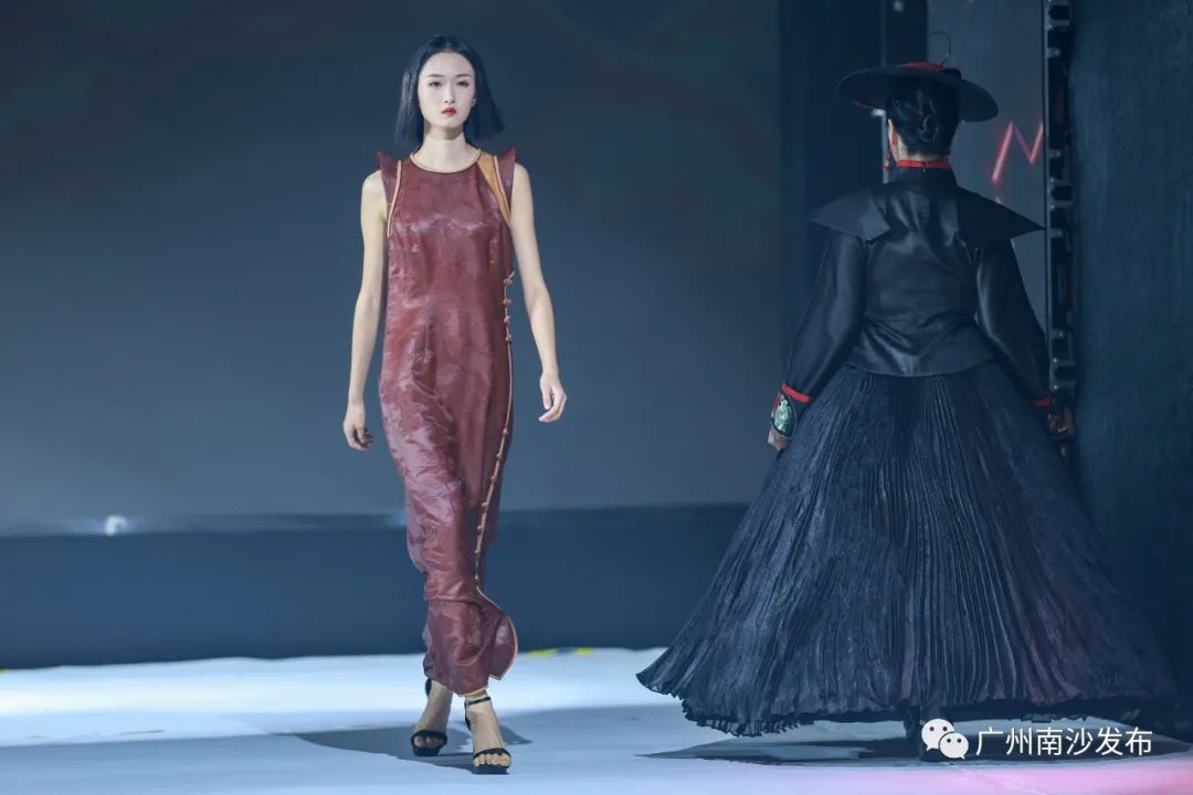 香云纱服饰从T台中缓缓走出。