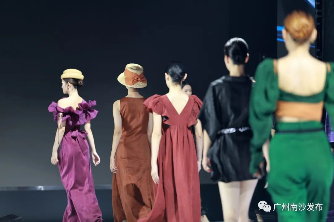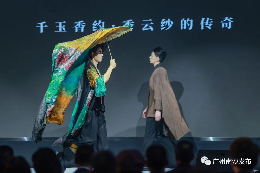此外,传统非遗与时新设计的融合,是南沙香云纱的当下发展推陈出新之路,现场的舞蹈艺术者们结合南沙香云纱新时代的人文情怀和情境效果,对舞蹈进行创造性编排,创作了舞蹈《穗女晒莨》与《最·香云》。