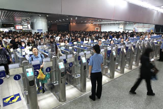 “您的证件可以从快捷通道通关,候检时间比较短!”10月14日晚8点30分,拱北口岸入境旅检大厅依旧人头攒动,客流不绝。据珠海边检总站拱北边检站统计的数据显示,当日,该站累计验放出入境客流达34.5万余人次,创三年来单日客流验放历史新高。