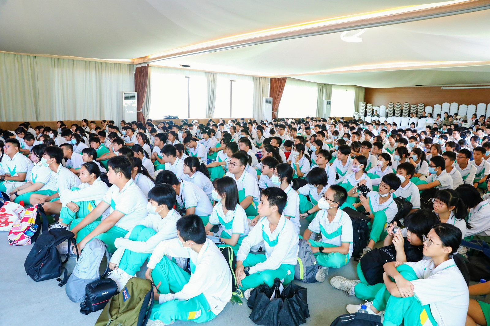 容一思的讲座是南武中学研学的第一课。容一思在讲座中讲述了自己的学习经历。他回忆,当他从北京跟随家人回到广州插班读书的时候,发现广州的教材和北京完全不同,当时,北京是初中才开始学习英语,而广州在小学三、四年级已经开始学习英语了。当他在华南师范大学附属中学读书的时候,成了一个“学渣”:全英英语课上,其他同学聚精会神地上课,用英文和老师交流,他却一点都听不懂。容一思说,当他做了两年“学渣”,成为一名初三学生、中考近在眼前的时候,他想,我应该为自己拼一把!
