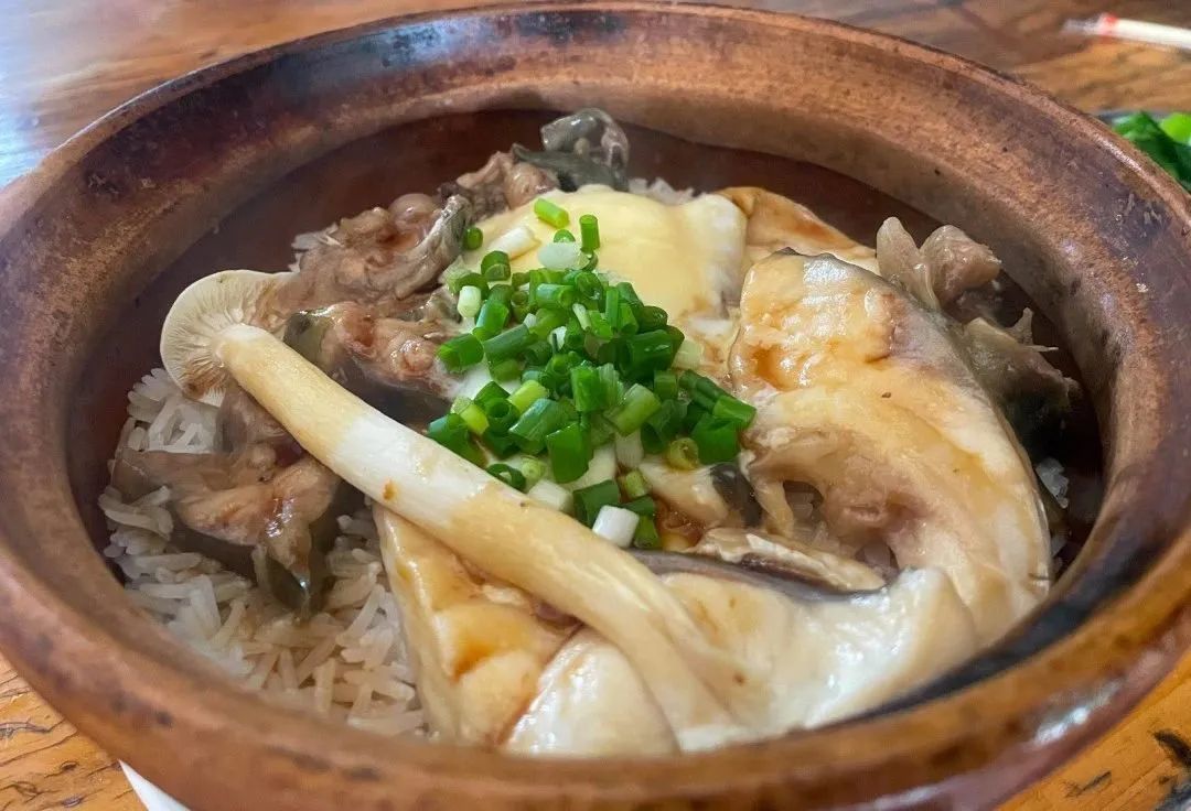 这里的煲仔饭和别处不太一样,煲仔饭的面上不放蔬菜,而是放海鲜菇。