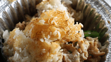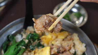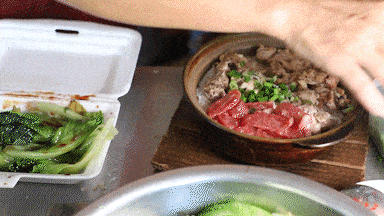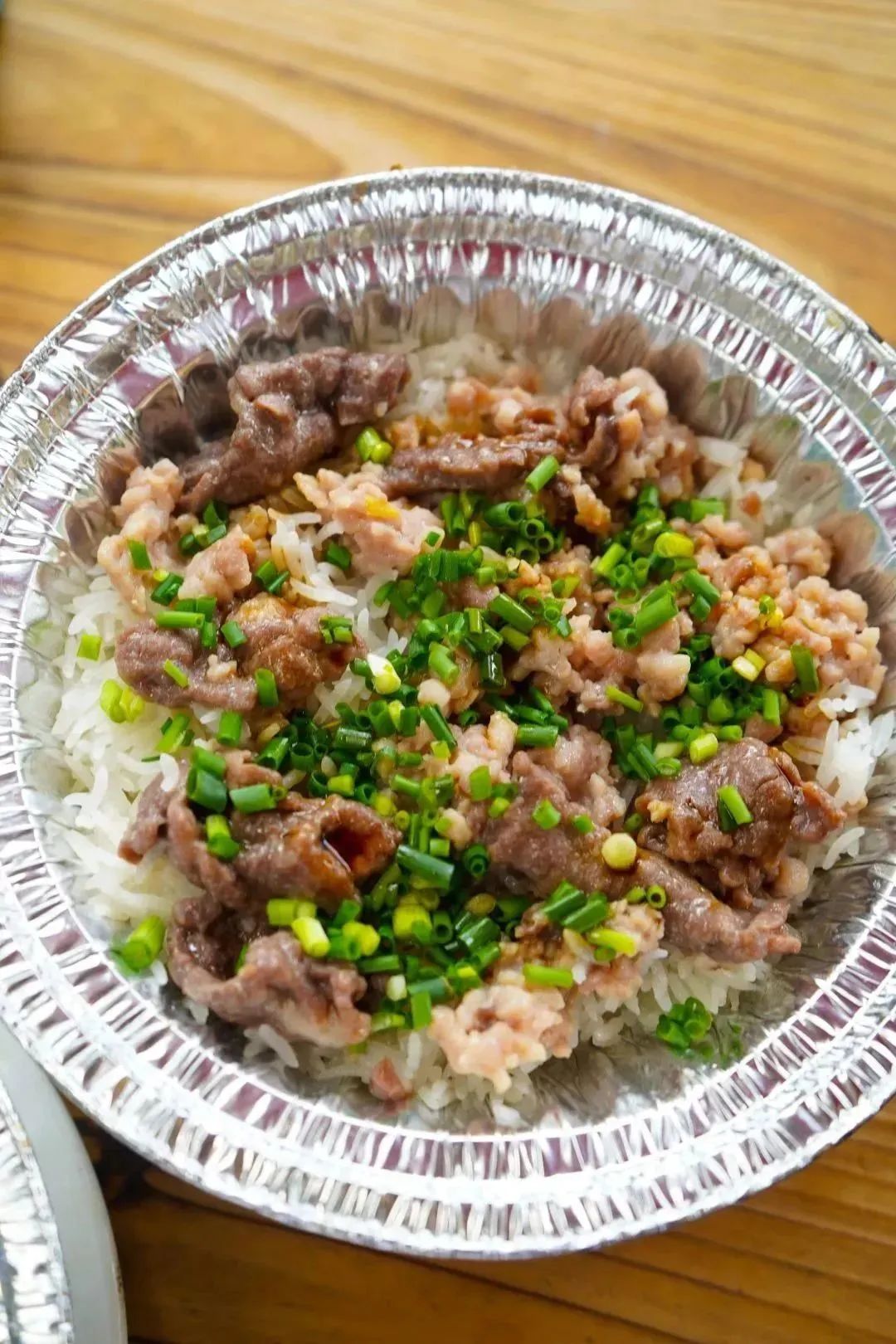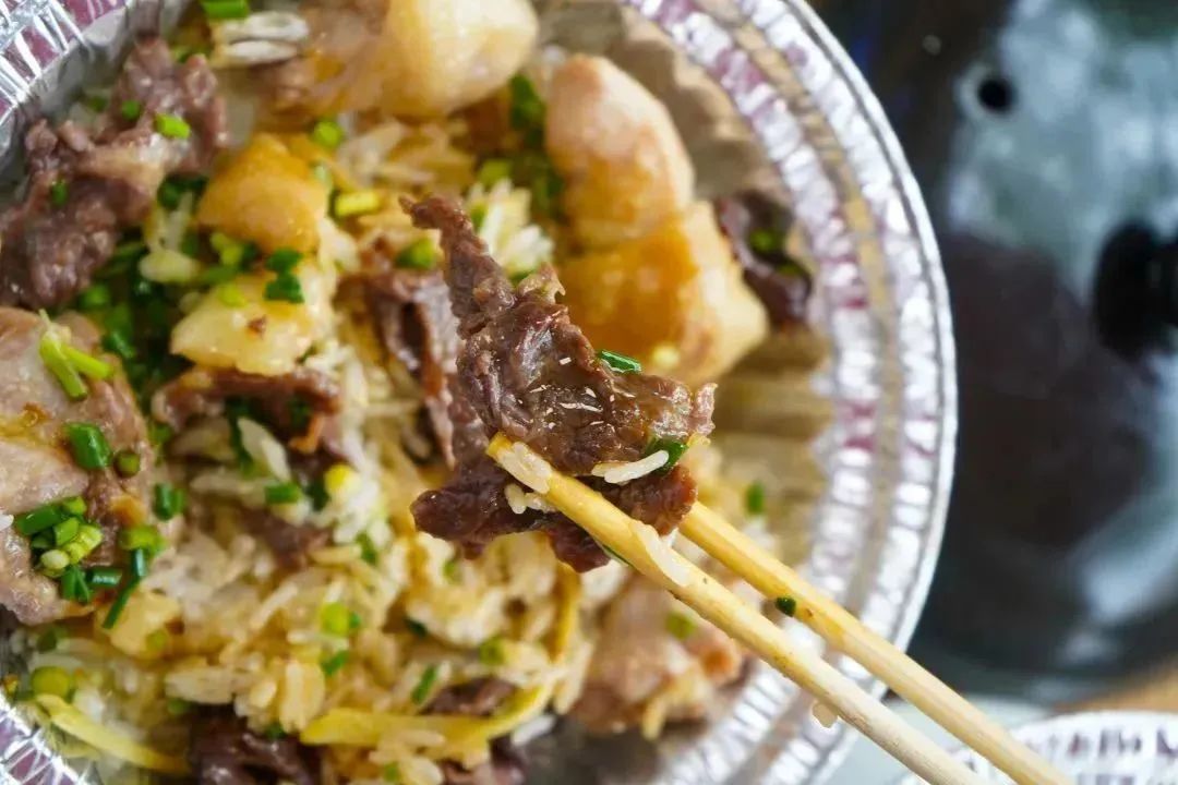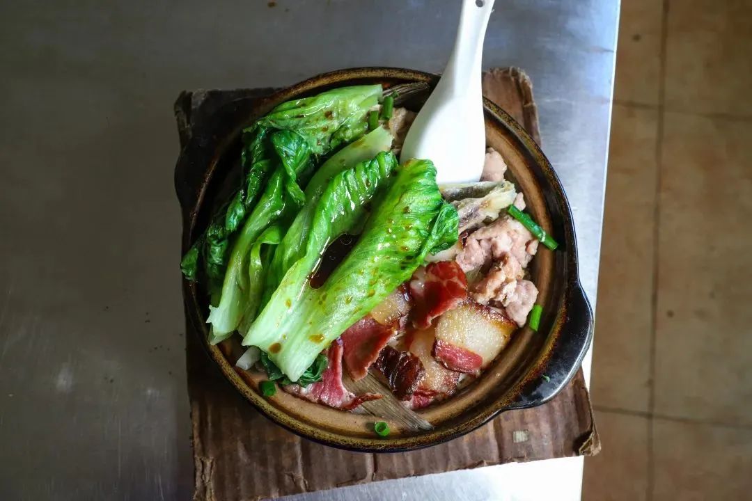 新鲜出炉的煲仔饭,冒着蒸腾的热气,撩拨着食客的味蕾。铺得满满当当的肉食,大吃一口,又是幸福感满满的一顿午餐~