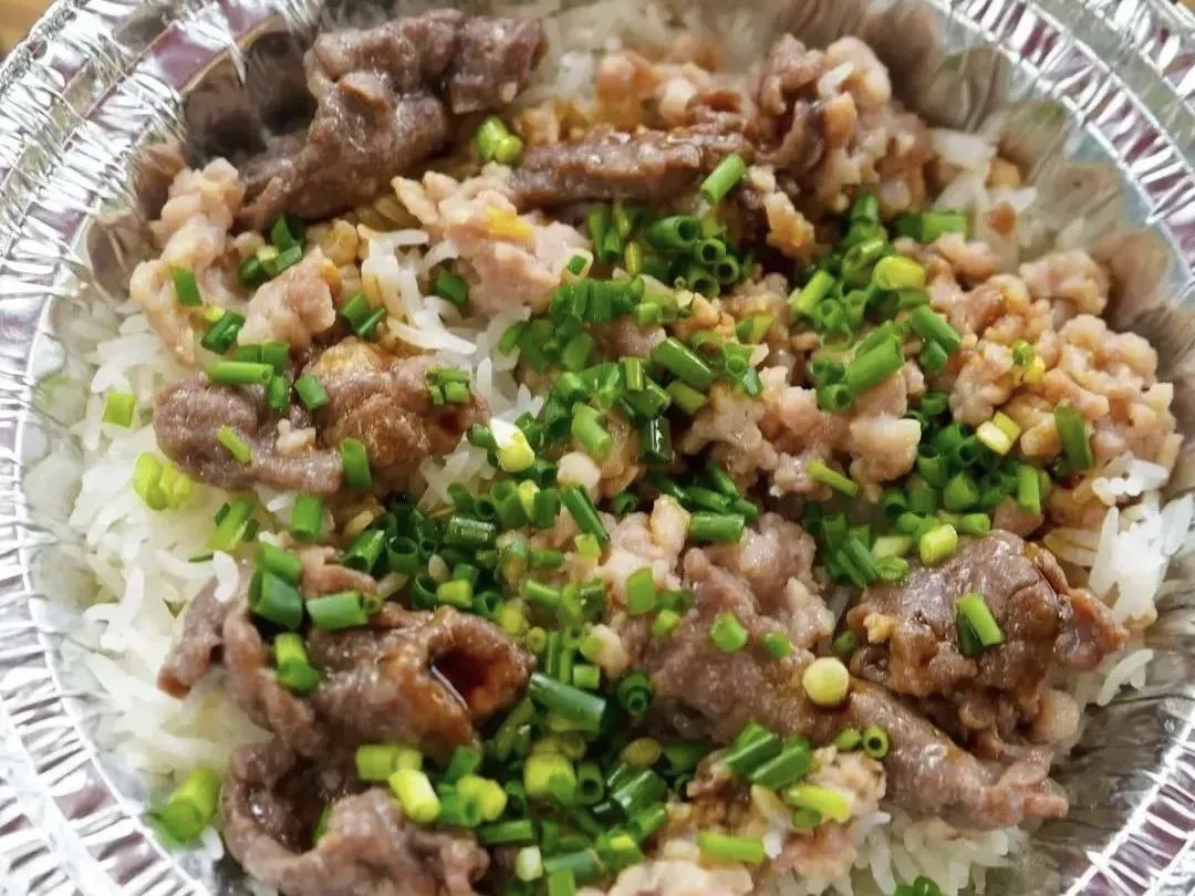 拨开面上的青菜,鲜嫩的肉都藏在下面,再加上特制的酱油拌饭会更加的香。