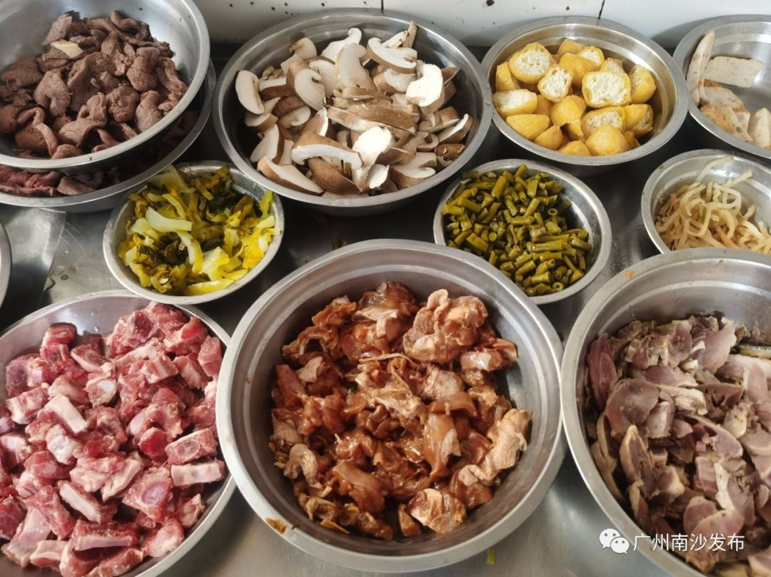 最后,我们来到位于东涌镇鱼窝头市场旁的罗兴煲仔饭。中午饭点一到,各种新鲜食材已经备好。