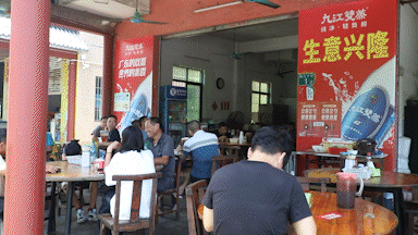 位于大岗镇灵山村的这家德记煲仔饭已经开了18年,虽然开在看似人流量并不大的街边,但每每到饭点的时候,店里早早就坐满了人。