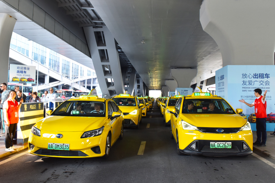 10月15日,第134届广交会开幕。当天下午,如约出行集团组织2125辆次黄色巡游出租车有序驶入会展中路上客区现场,缓解客流高峰疏运压力。记者了解到,第134届广交会期间,如约出行集团将派出超过21000辆次的出租车参与出行保障服务。