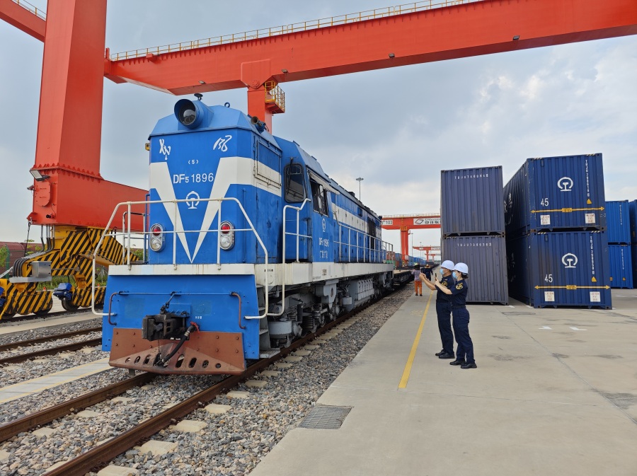 广州海关所属广州车站海关在广州国际港对中欧班列进行监管。