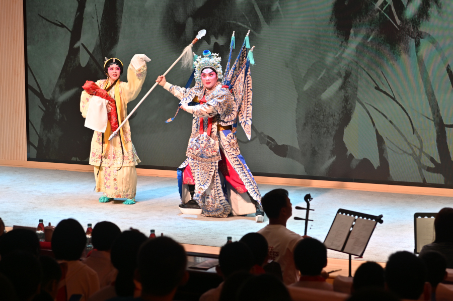 现场,广东粤剧院二团的优秀演员带来了粤剧《四大名著·选粹》。 重读经典、继承经典、再现经典、重塑经典,从中体现名著与现实生活的关联。黄燕在导赏中特别指出,“《红楼梦·宝黛初见》聚焦宝黛的感情,《三国演义·长坂坡》凸显赵云的忠诚,《水浒传·李逵探母》关注李逵的孝顺,《西游记·盘丝洞》要看到唐僧师徒的团结。”