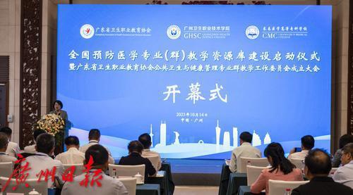 10月14日,全国预防医学专业(群)教学资源库建设启动仪式暨广东省卫生职业教育协会公共卫生与健康管理专委会成立大会在广州举行。