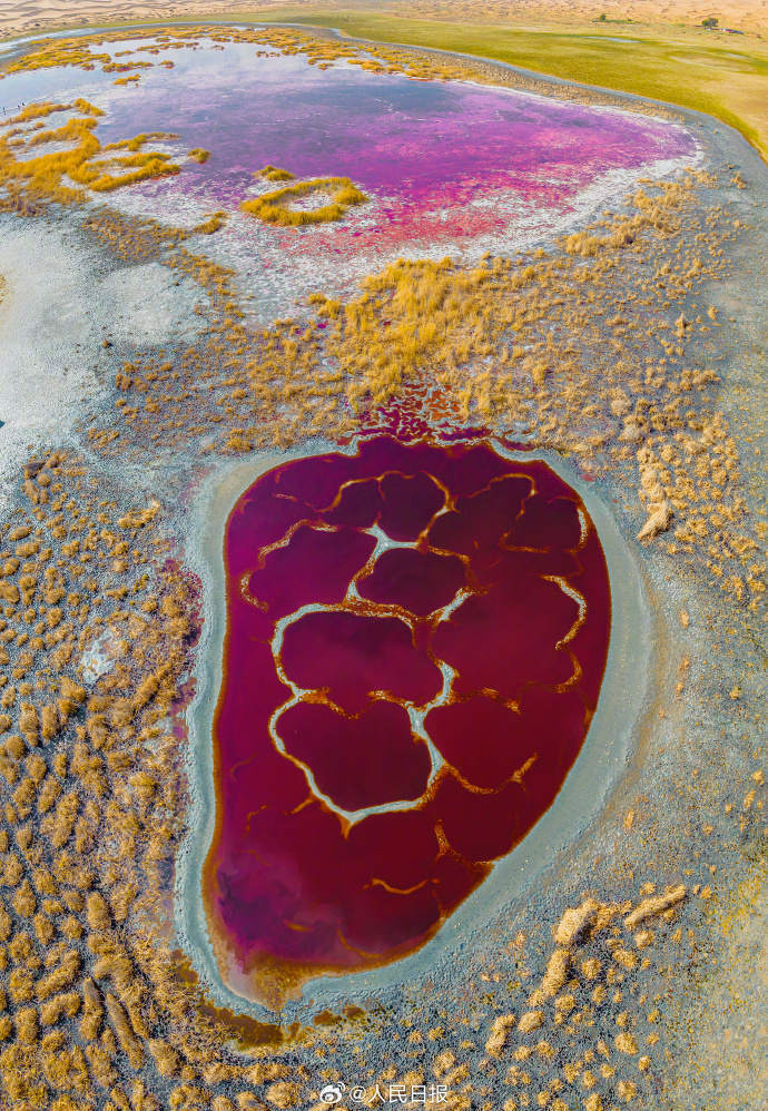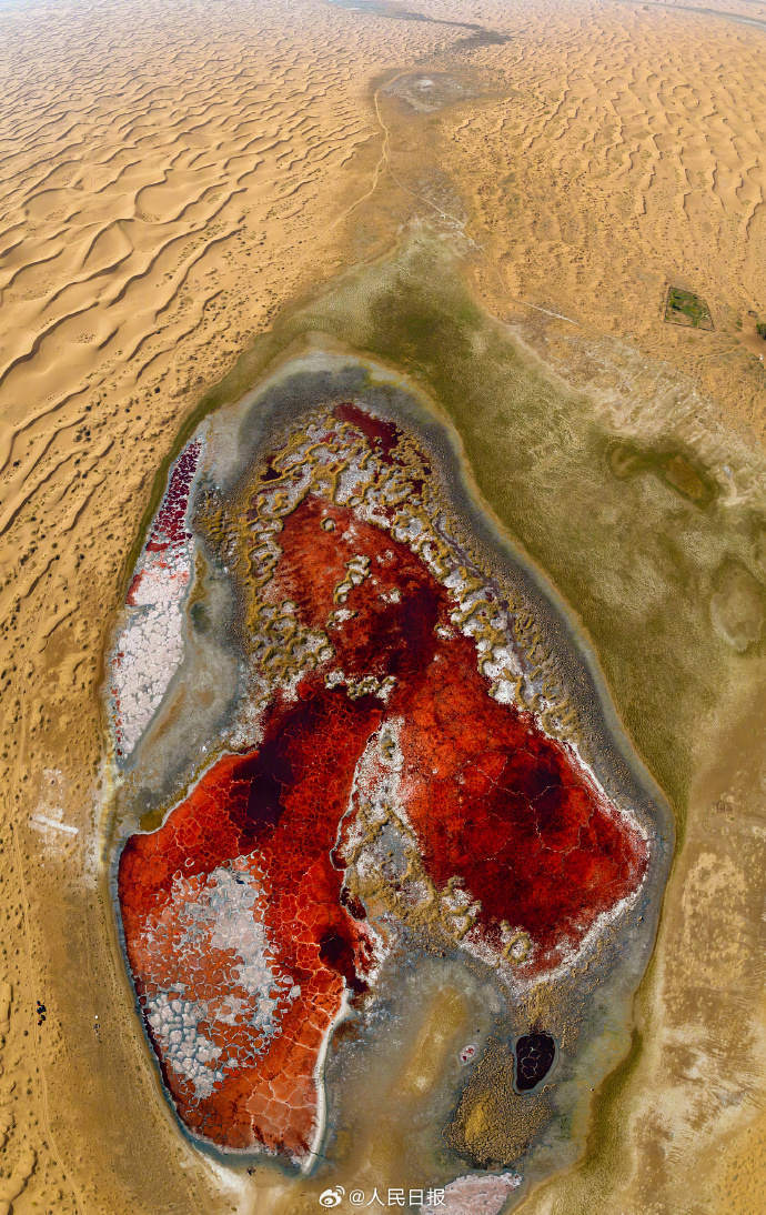 10月13日,内蒙古阿拉善。腾格里沙漠深处,散落着大大小小的湖泊,这些沙漠湖泊形态不一,色彩各异。它们像钻石一样撒落在茫茫大漠,成为腾格里沙漠一道亮丽的风景。戳图感受↓↓↓