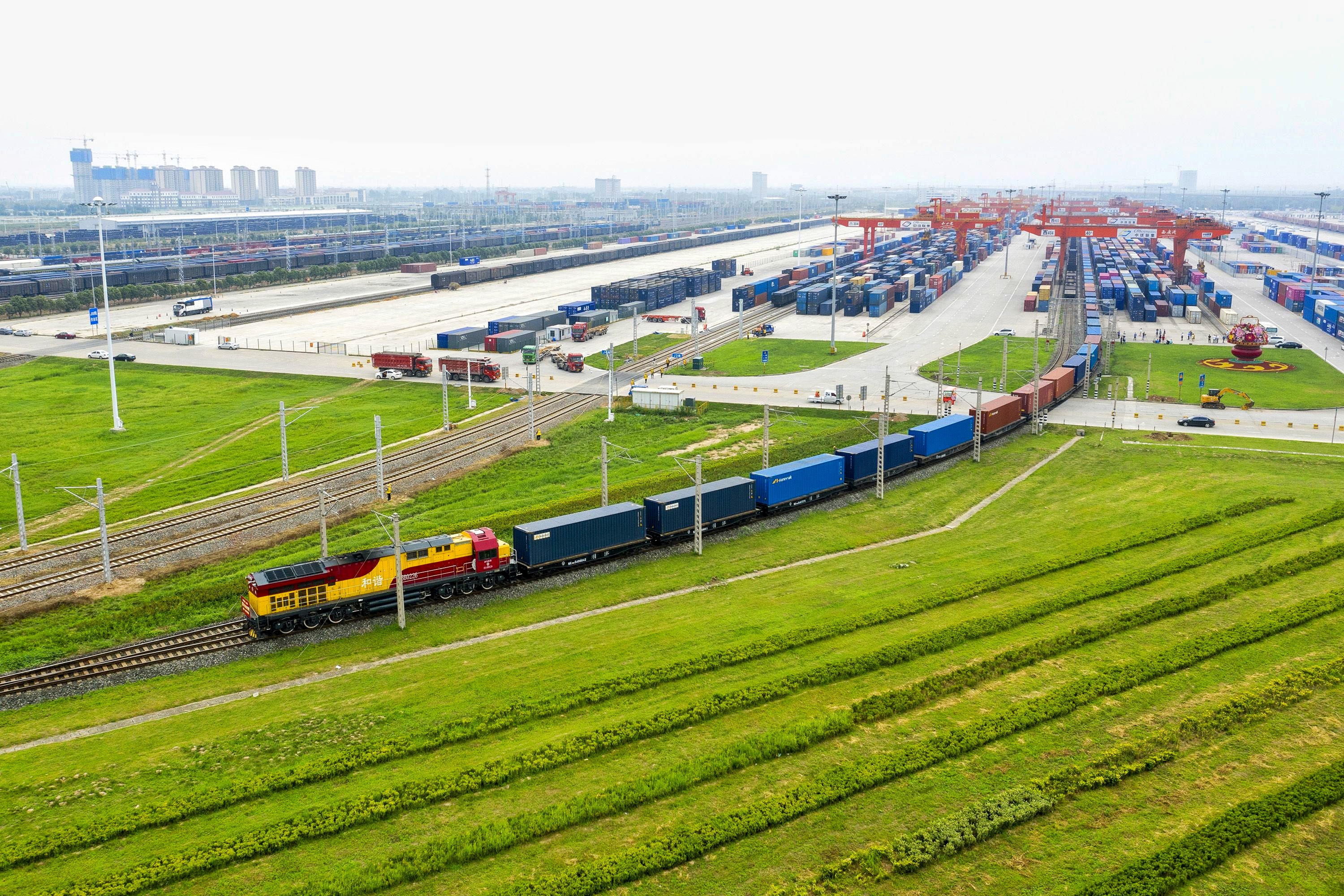 中欧班列从西安国际港站驶出。@视觉中国
