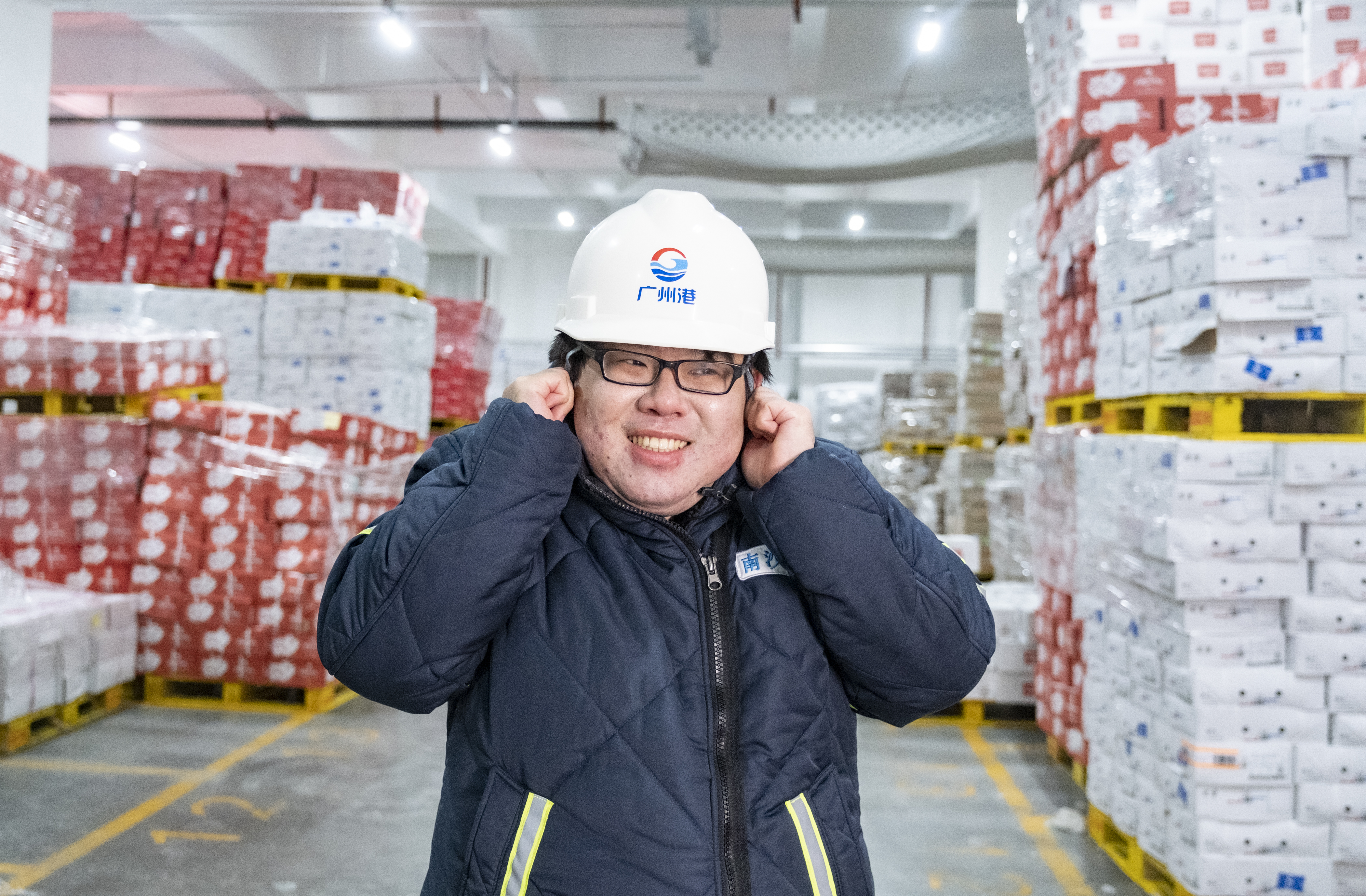 记者钻进零下23摄氏度的冷库中。