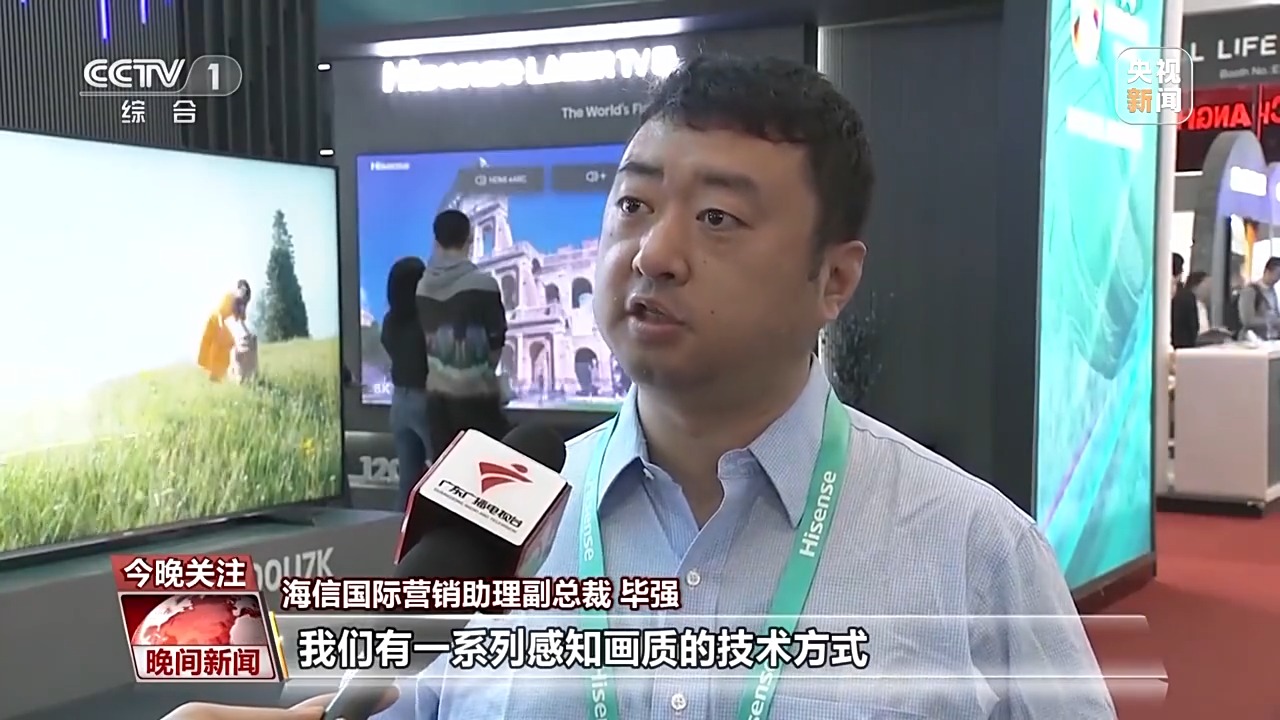 海信国际营销助理副总裁 毕强:我们有一系列的感知画质的技术方式,它能够通过用户使用的环境来动态地改变我们的画质参数,使电视机永远处在一个用户感知到的画质最好的一种方式。广交会每一年其实都有源源不断的新客户来跟我们交流,甚至很多客户直接就在展会上下订单。