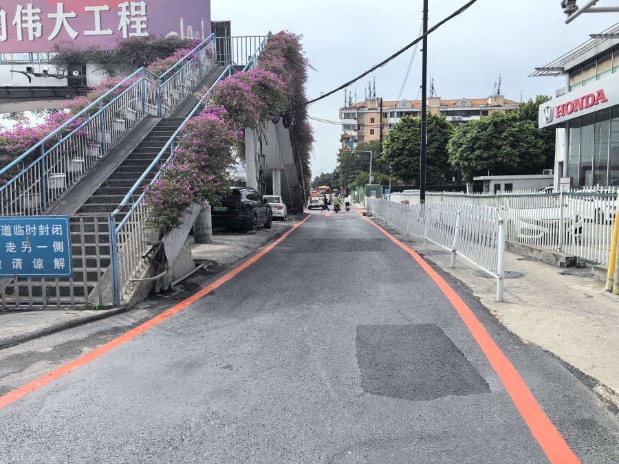 获悉相关情况后,施工项目部立即组织全面排查,再次对增槎路罗冲围加油站对出辅道路面进行了加固修复。截至目前,施工单位已组织作业人员完成了该路段300多米路面的修复,并且重新铺设沥青路面,画上标线,增设交通标识,安排交通督导员引导交通,确保交通顺畅。