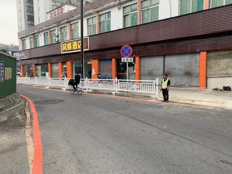 因配合地铁十三号线二期松溪站施工,根据相关政府管理部门的同意,增槎路罗冲围加油站对出辅道路面在2019年7月开始实施了临时交通疏解。为确保交通顺畅和市民便捷出行,施工单位在该交通疏解道路配置了交通疏解员进行交通引导,日常通过专人巡查、维修等方式做好道路维护。