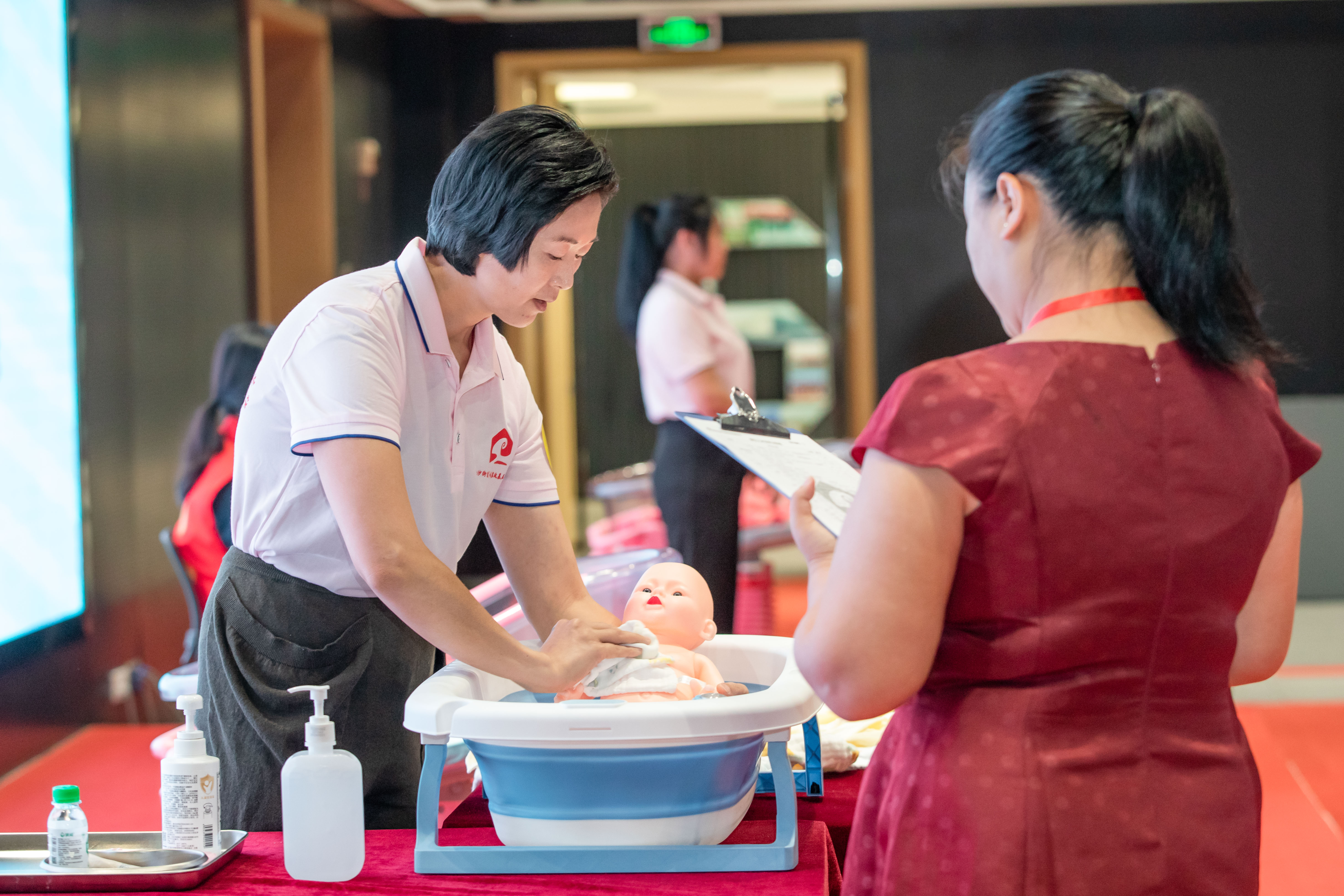 总决赛围绕“指导家长学习新生儿呛奶的急救方法”“新生儿沐浴”两大项目,通过“理论+实操”的考核方式全方位考察参赛选手的妇幼健康服务水平。竞赛赛程精彩纷呈,选手们纷纷使出“看家本领”,充分展现了家政工作的细致特点。