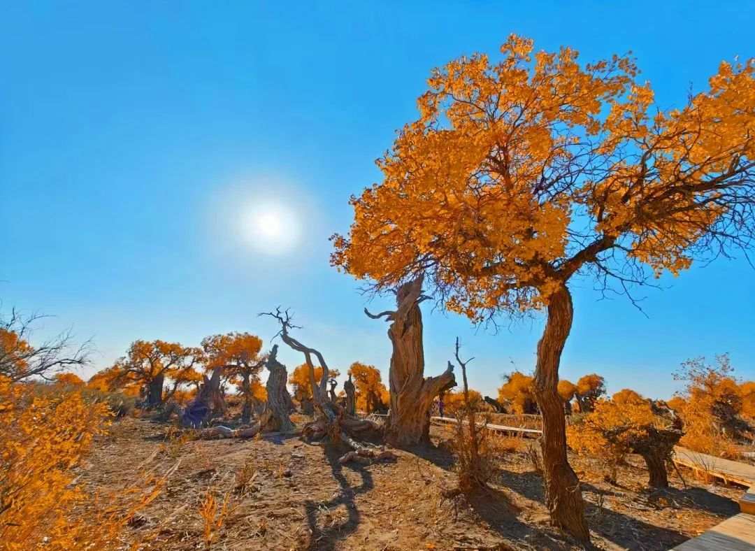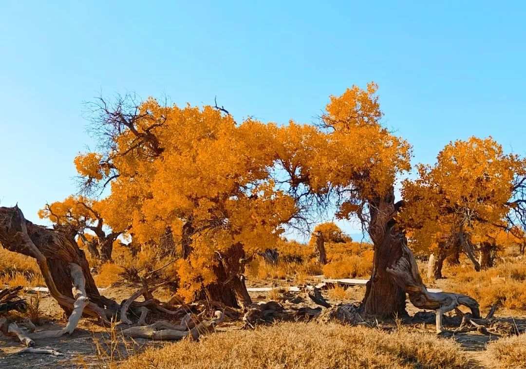塔里木胡杨林国家森林公园位于轮台县,是塔里木胡杨保护区的核心区域,也是新疆胡杨分布面积最大、最集中的区域。