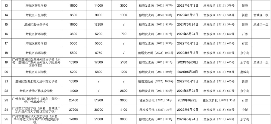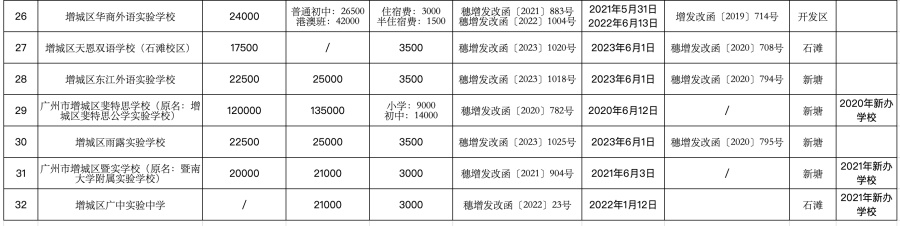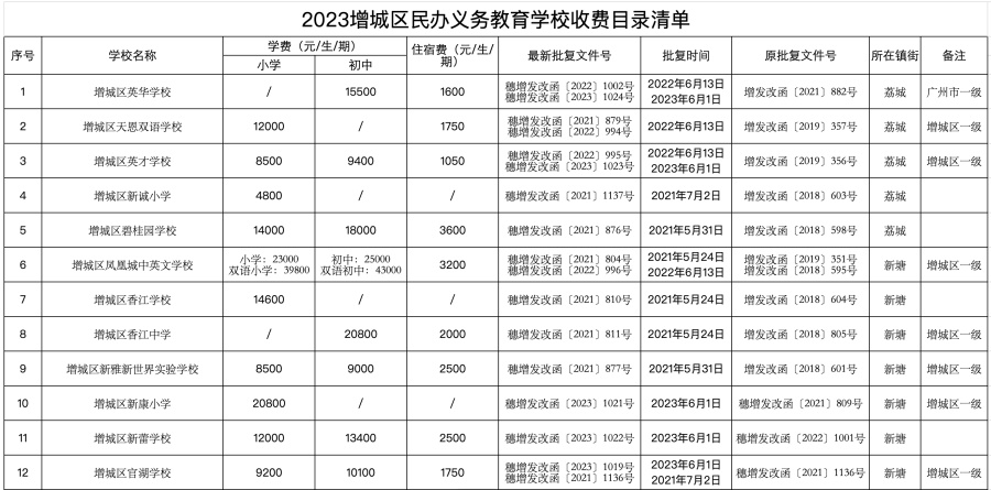 近日,增城区发布《2023增城区民办义务教育学校收费目录清单》。该清单共展示了32所学校的收费情况。