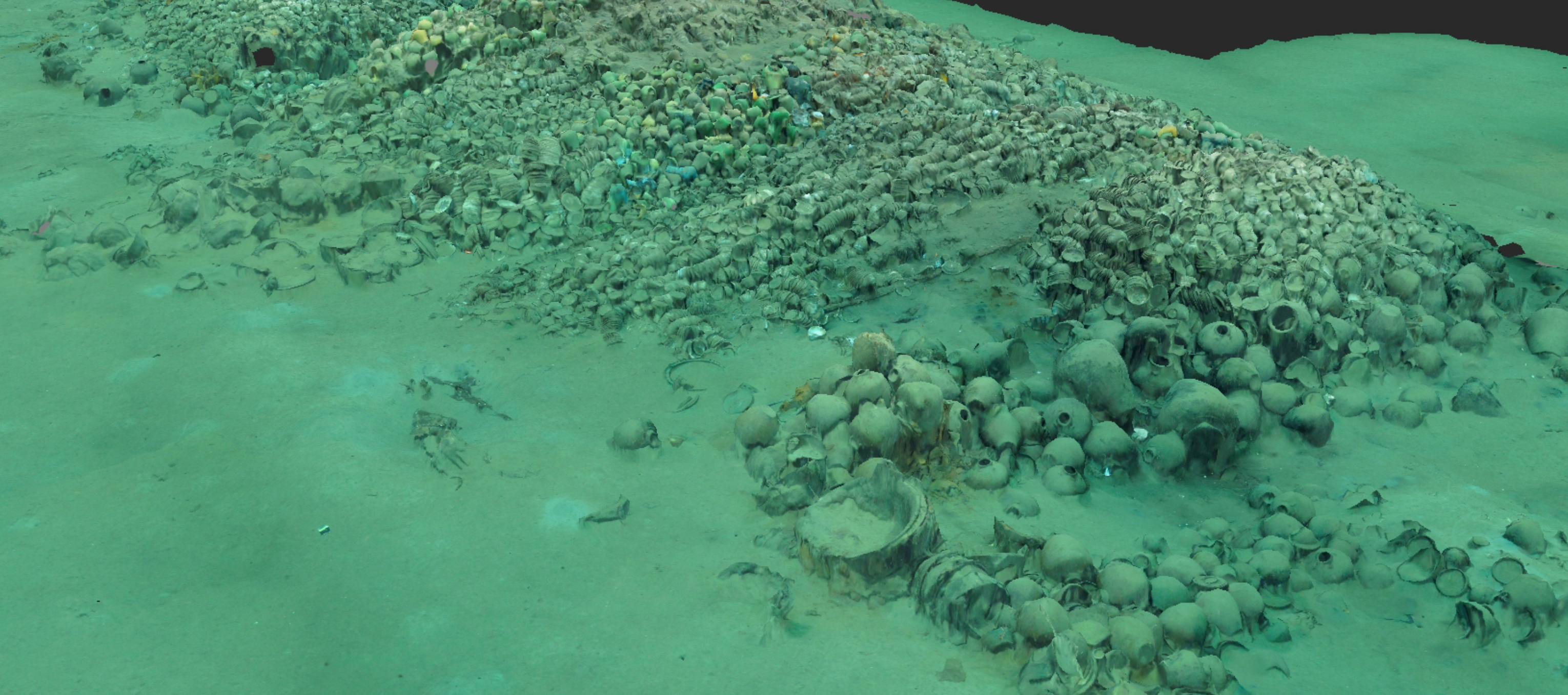 其中,一号沉船遗址核心区为船体和大量陶器、瓷器、铁器等船载物品,目前已提取出水陶器、青花、青釉、青白釉、白釉、红绿彩、珐华、单色釉、素三彩等器物540余件(套),沉船年代大致为明正德年间(公元1506至1521年),船货以景德镇窑瓷器为主,推测是从福建或广东出发,前往马六甲等贸易中转站的民间商船。二号沉船遗址主要发现大量排列整齐、码放有序的原木堆积,目前已提取出水原木、瓷器、陶器、蝾螺壳、鹿角等遗物30余件,沉船年代大致为明代弘治年间(公元1488至1505年),推测是从马六甲等贸易中转站,运载乌木等货物,返航中国的民间商船。