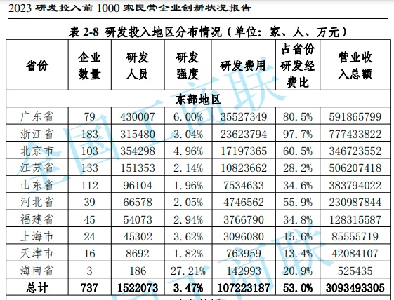《2023研发投入前1000家民营企业创新状况报告》从创新基本情况、研发投入状况、科研组织状况、科技成果状况、创新发展环境等五个方面,以及区域、行业、绩效三个维度,对我国研发投入前1000家民营企业进行分析,以进一步研究我国民营企业的创新发展情况。
