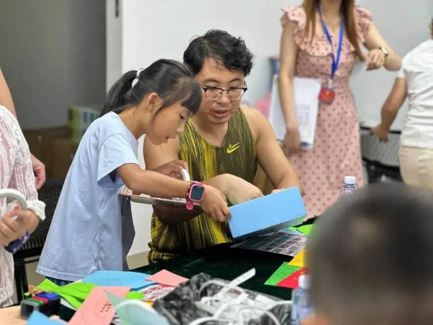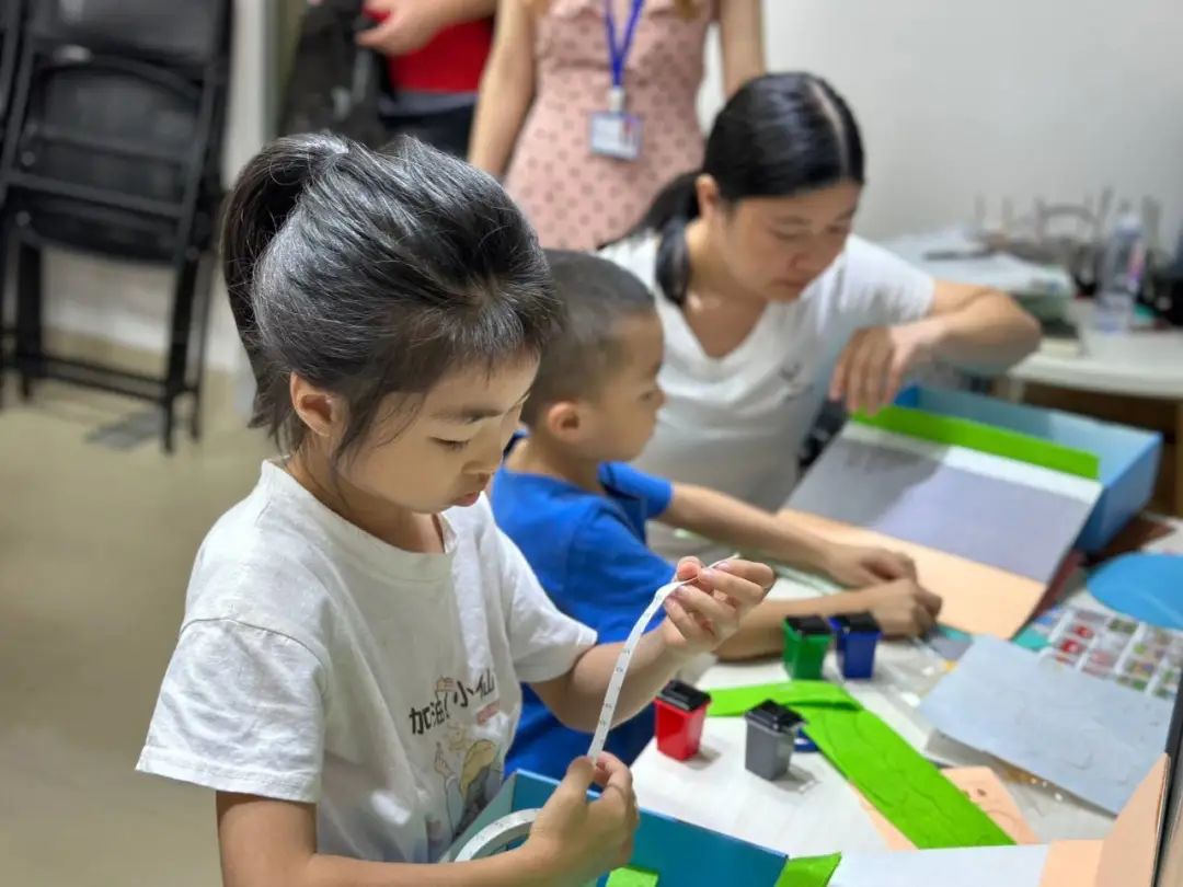 在手工制作过程中,工作人员耐心地给小朋友讲解垃圾分类知识,并将印有各式各样物品的小卡片分发给小朋友,向他们解释每种小卡片所代表的物品,以及应放置在何种分类桶中。在寓教于乐的亲子创意手工活动中,小朋友们轻松掌握垃圾分类知识。