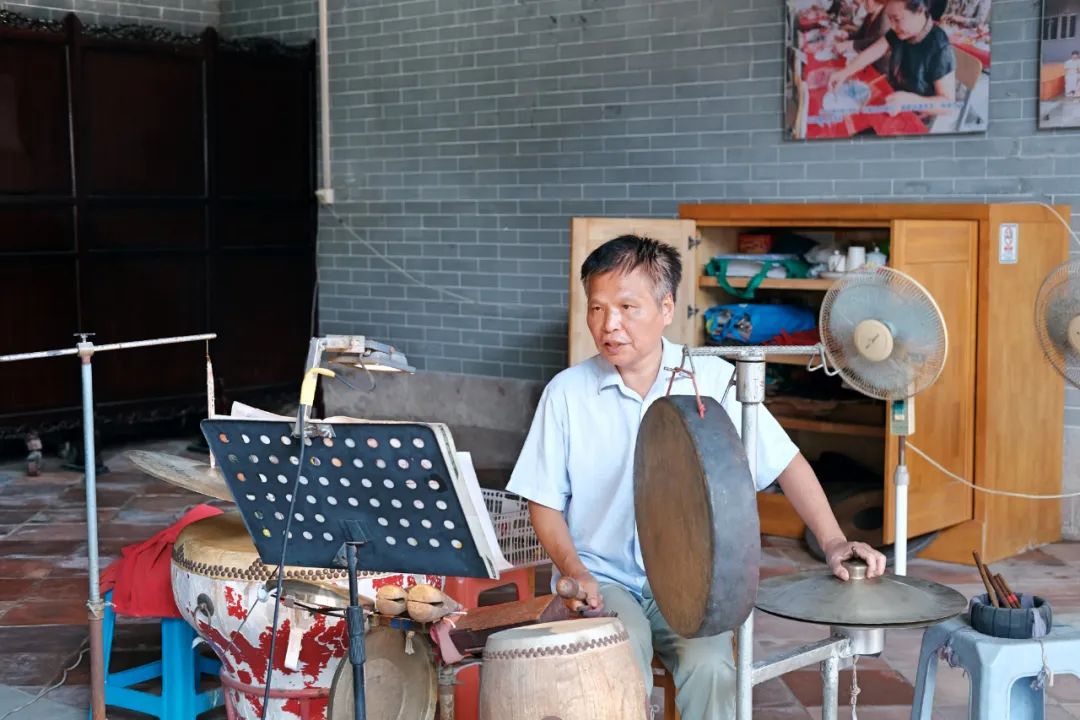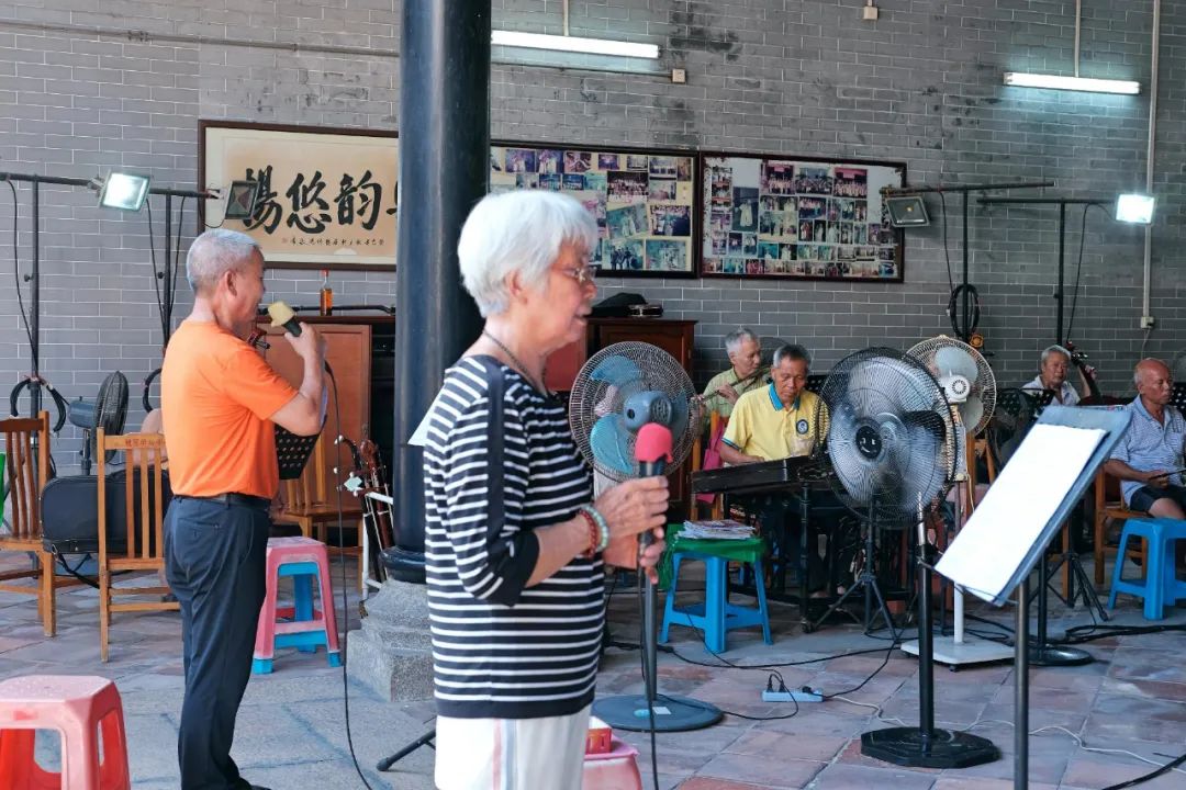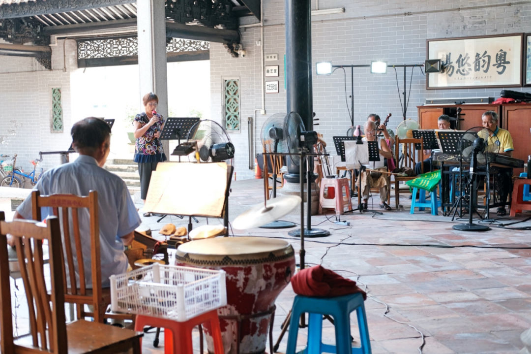每周二、四下午,石楼镇的雪松公祠里弦胡声高低起伏,锣鼓铿锵奏响,抑扬顿挫的粤曲唱腔从古朴的祠堂飘出。星光乐社又开唱了。