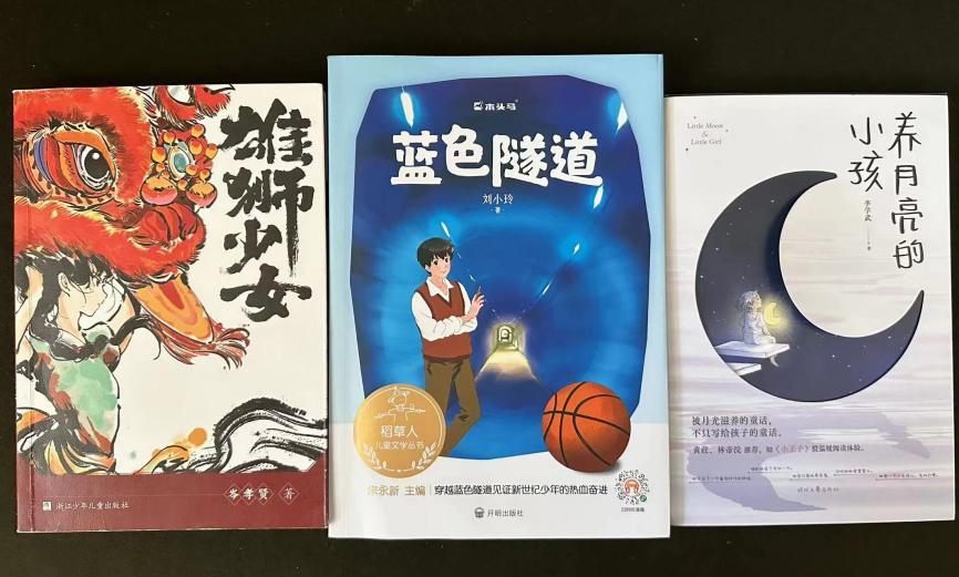 本次研讨会特邀刘小玲、李学武、岑孝贤三位优秀的儿童文学创作者携带她们的三部作品,《蓝色隧道》《养月亮的小孩》和《雄狮少女》,来到现场开展创作分享与探讨。