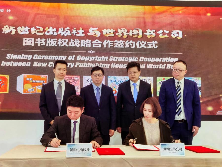 在签约仪式上,新世纪出版社社长陈少波与世界图书出版公司中国区总裁何蓓琳共同签署了图书版权战略合作协议和《失物招领》系列图书版权授权协议。本次签约仪式标志着双方在版权贸易、国际推广和市场推广等方面将进一步加强合作,未来,新世纪出版社与世界图书公司将从选题策划环节展开合作,开发符合中外儿童需求的优质读物,共同探索图书领域的发展机遇,推进国际图书市场的良好发展。