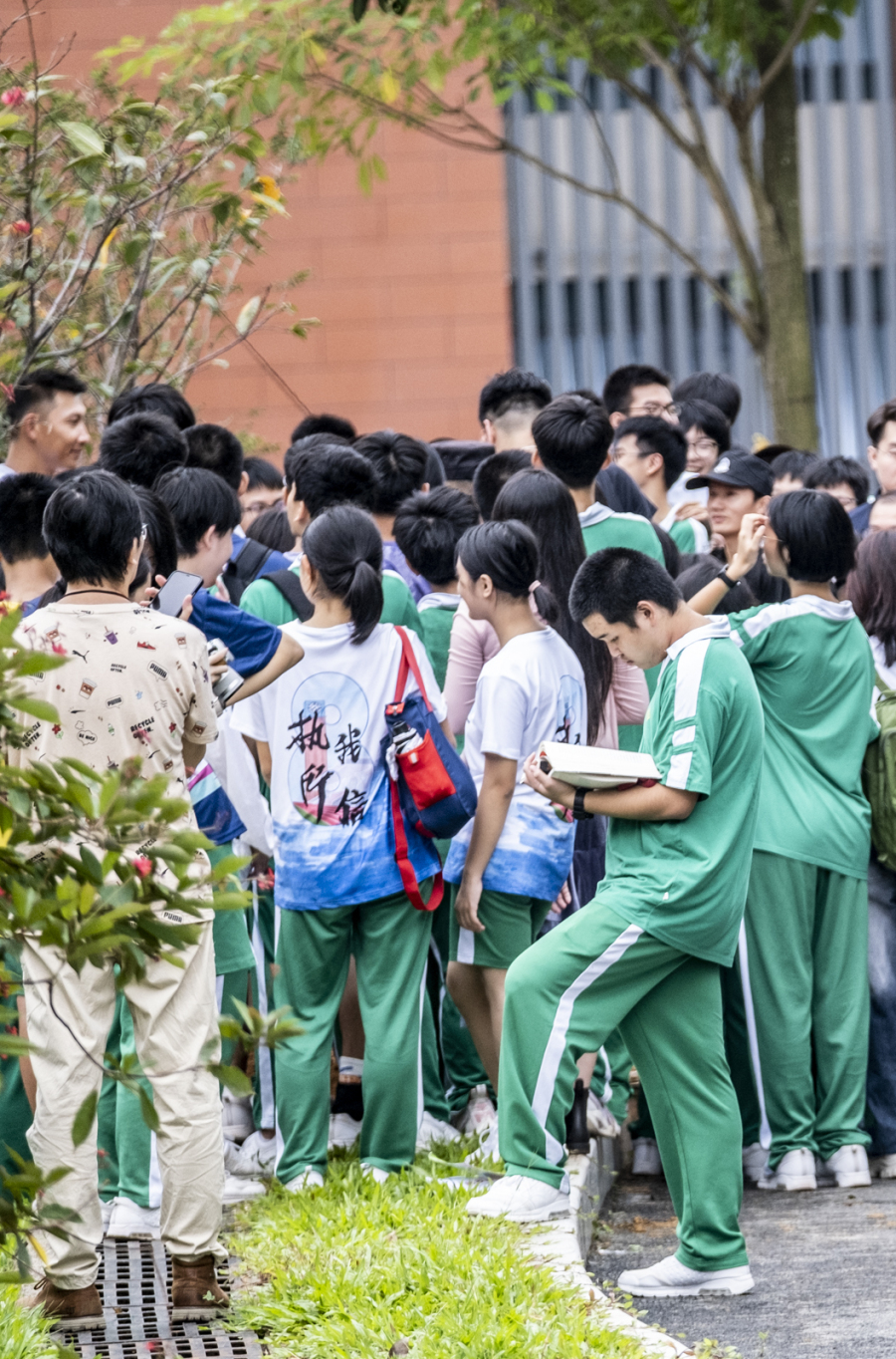 团团围住易建联的熙攘人群外,一位执信学子正认真看书。