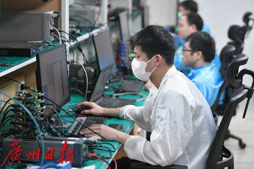 泰斗微电子科技有限公司的研发实验室,工作人员正在进行测试工作。