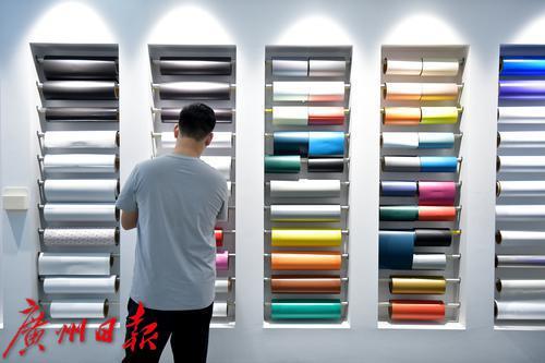 烯湾科城(广州)新材料有限公司,工作人员在展厅中作介绍。