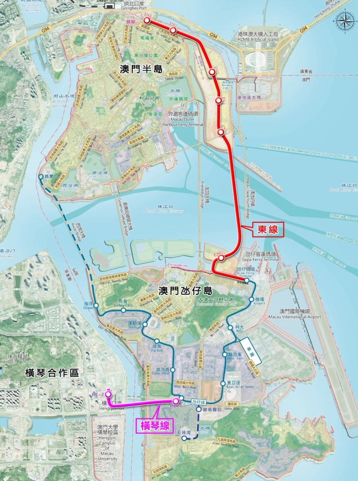澳门轻轨东线是澳门特区政府加强和丰富澳门现有公共交通体系中的关键节点线路,工程连通澳门半岛、新城A区、新城E区及氹仔岛,全长约7.7公里,全线共新建6座车站。