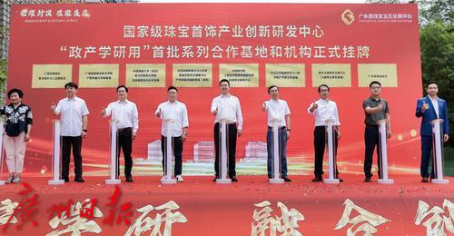 现场进行了番禺区珠宝产业重点项目签约仪式,为番禺特色产业和经济社会的高质量发展贡献力量;番禺区“小个专”党委、番禺区珠宝首饰产业链党委、番禺区人民检察院第八党支部支部、广东宝交中心党支部“红联共建工作站”正式揭牌,进一步发挥党建引领作用赋能产业发展;“政产学研用”首批系列合作基地和机构正式挂牌,进一步强化科技研发、智能制造、跨界合作等系列功能,为中国珠宝产业的高质量发展注入源源不断的内生动力;广东宝交中心向番禺区相关职能部门赠送锦旗,感谢各职能部门给予的大力支持和热心服务。