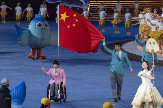 10月22日,杭州第4届亚残运会盛大开幕。来自广东广州的女子轮椅篮球选手黄晓连和来自江苏的轮椅击剑选手孙刚担任杭州第4届亚残运会开幕式中国体育代表团旗手。黄晓连曾随队参加东京残奥会和世锦赛,并获得银牌,被誉为队中的“关键女侠”,是稳定的得分手,她期待中国队在本届亚残运会上能够蝉联冠军。