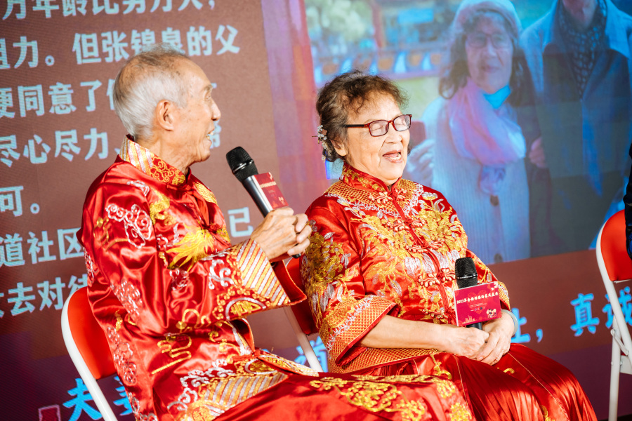 张锦泉(86岁)吴巧儀(90岁)夫妇结婚66年。当年,由于女方年龄比男方大,两人从恋爱到结婚受到了不少阻力,但张锦泉的父亲见吴巧儀对自己的儿子好,便同意两人在一起。结婚后,张锦泉对吴巧儀的家人尽心尽力,处处帮忙,也获得了吴巧儀家人的认可。如今,两位老人都热心参与街道和社区工作。