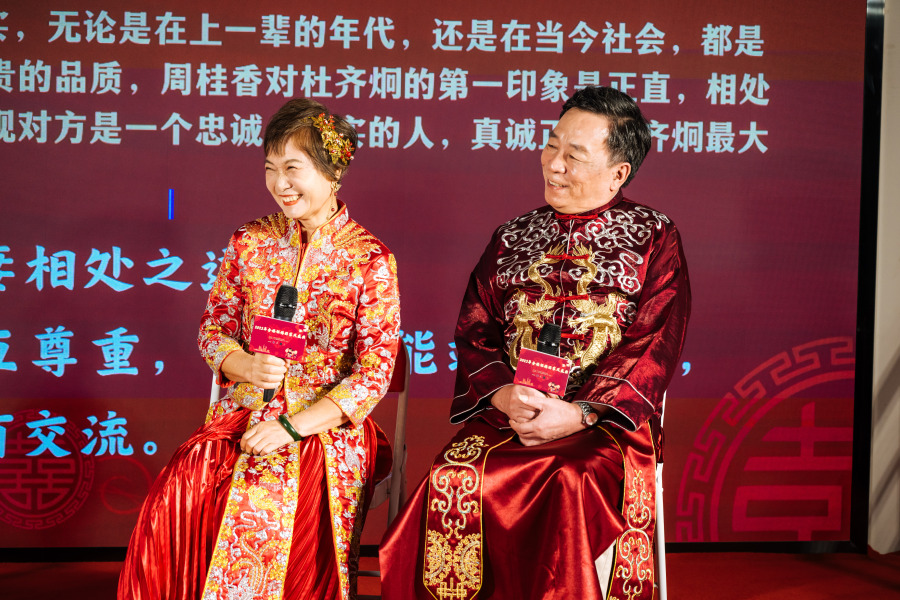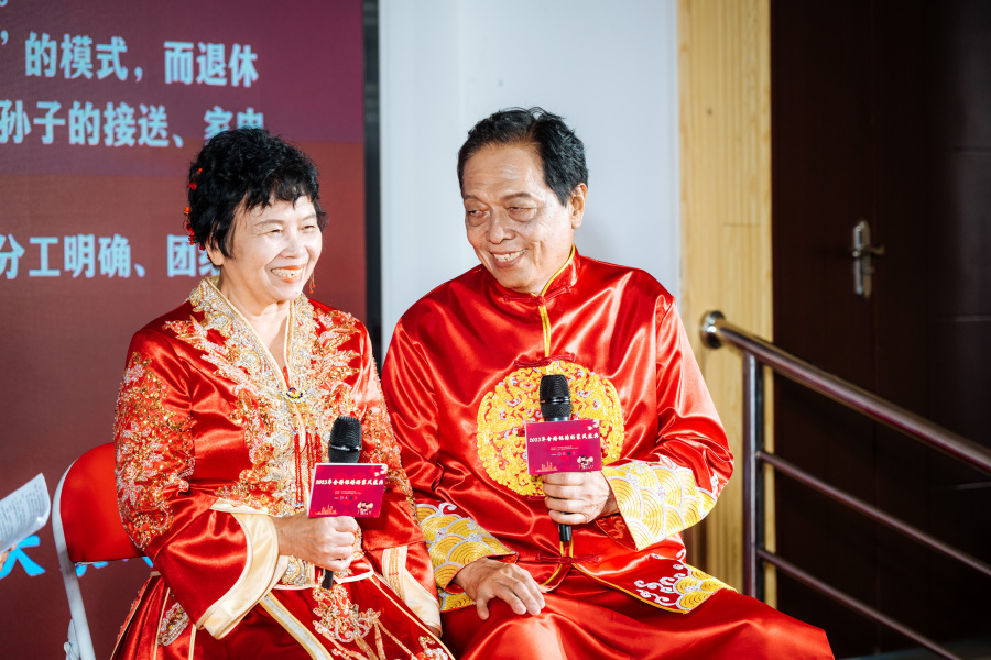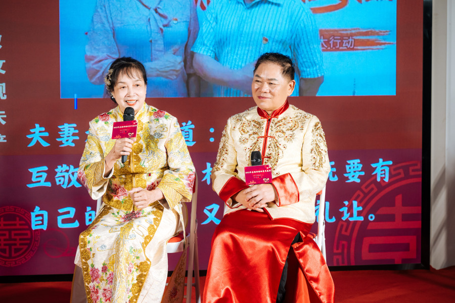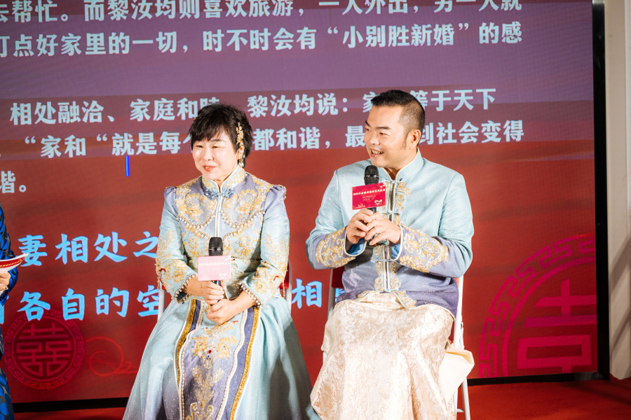 金婚银婚好家风盛典已连续举办七届,今年,主办方从全市钻石婚、金婚、银婚上百对的夫妻里挑出9对有故事的夫妻代表(寓意“真情恒久远”),活动从“国——赤子心,爱国情”“家——孝长辈,爱幼亲”“礼——书香浓,耕读情”三个篇章,讲述9对夫妇的伉俪情深,并为他们颁发活动证书。他们中婚姻时间最长的张锦泉(86岁)吴巧儀(90岁)夫妇已经结婚66年。
