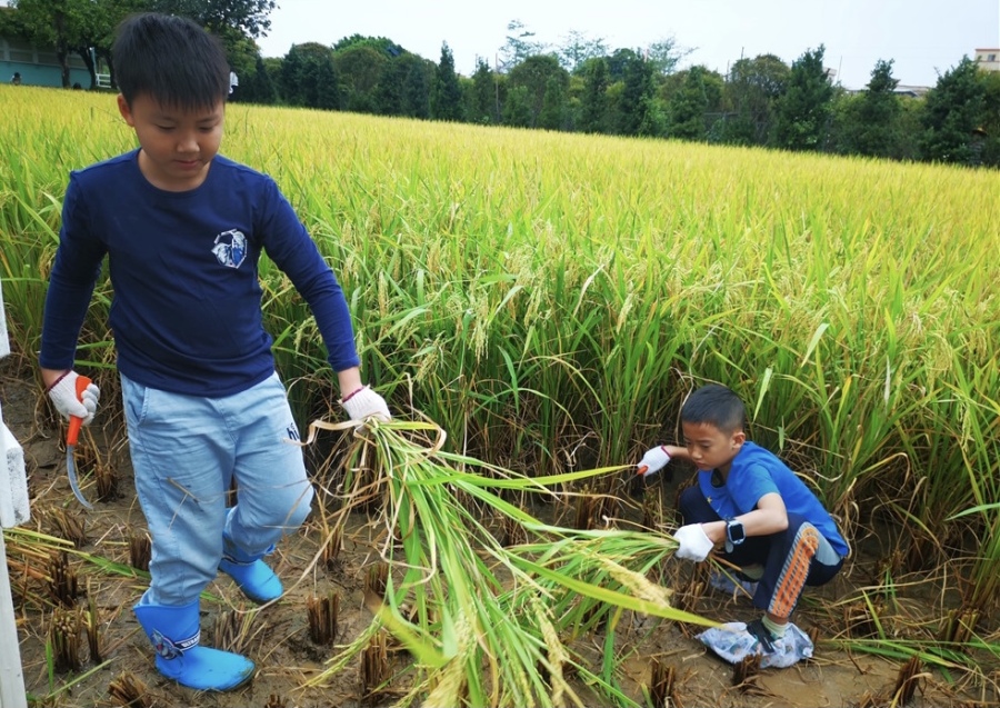 这些小朋友是番禺一家金融机构的职工子弟,在单位工会的组织下,由家长陪同来到这里体验收割水稻,他们大多数是第一次收割水稻。