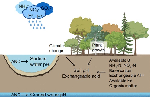 据了解,在整个研究期间,地表水和地下水的pH逐渐升高,自然林土壤pH的恢复强于人工林。然而,与降雨pH的增加相比,土壤pH的恢复落后约十年。土壤pH恢复的滞后性可能与土壤中铝/铁-羟基硫酸盐矿物的溶解和随后的硫解吸对土壤酸中和能力、土壤有机质增加以及气候变暖有关,同时也可能被增加的交换性铝和产生质子的羟基硫酸盐矿物溶解所减缓。地表水和地下水的pH值恢复与水的酸中和能力增加有关。