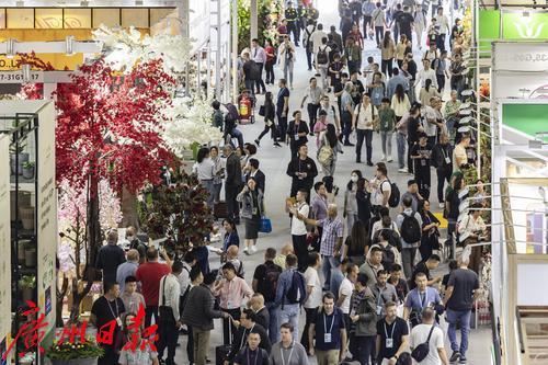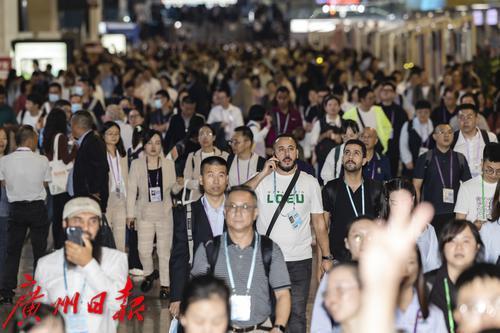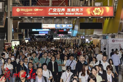 10月23日,广交会展馆内客流如织。当日,第134届广交会第二期在广东省广州市开幕,展览题材以家庭用品、礼品及装饰品、建材及家具为主,9674家企业线下参展。