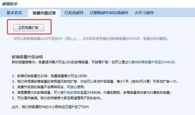 通过这个按钮即可让邮箱容量翻倍。