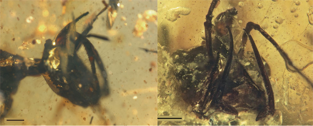 研究中涉及的两块刀颚蚁琥珀化石。(中国科学院南京地质古生物研究所供图)