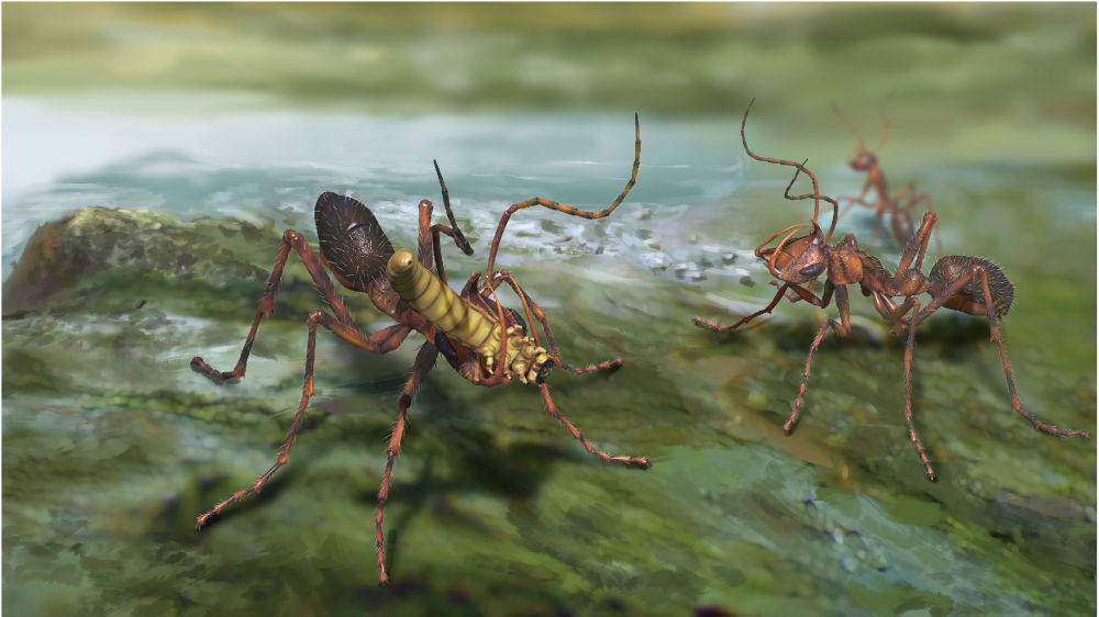 刀颚蚁捕食情景生态重建图。(杨定华 绘)